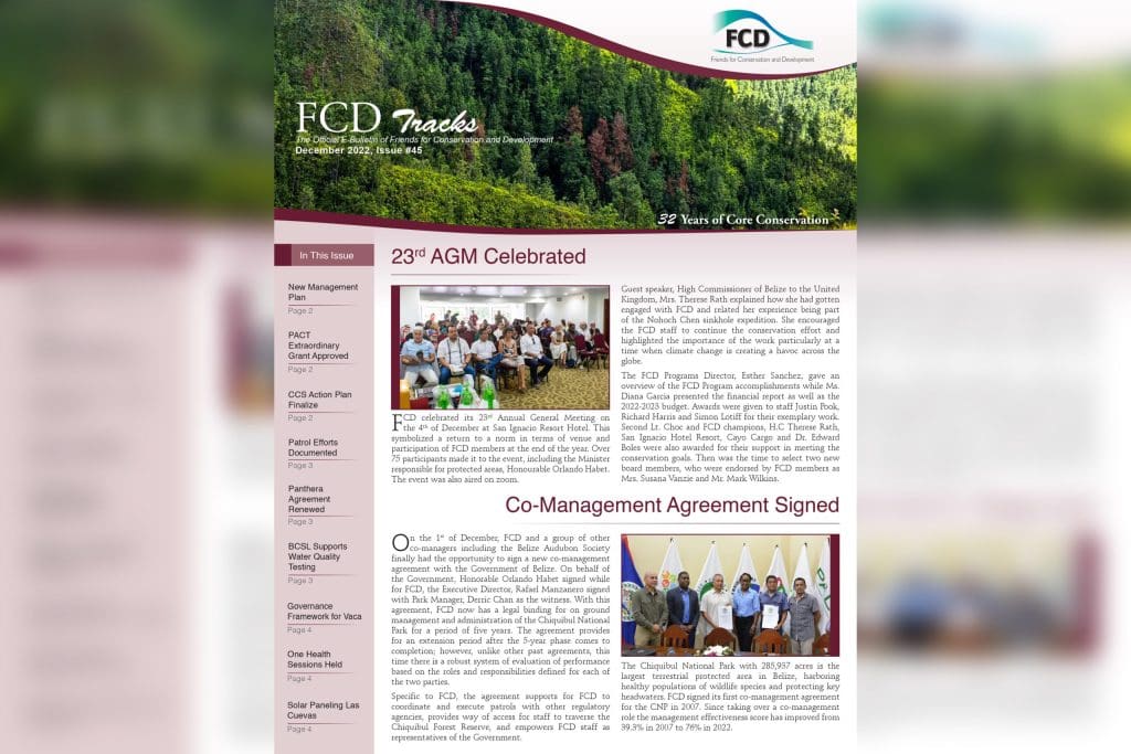 FCD celebrated its 23rd Annual General Meeting on the 4th of December at San Ignacio Resort Hotel. This symbolized a return to a norm in terms of venue and participation of FCD members at the end of the year. Over 75 participants made it to the event, including the Minister responsible for protected areas, Honourable […]
